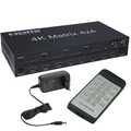 The 4 by 4 HDMI matrix with 4Kx2K supported which allows HDMI signal from any of its four sources to be routed to and displayed on any of its four connected HDMI displays simultaneously. It supports 3D, 3Gbps bandwidth, 12-bit Deep Color, Hi-Def lossless audio and other features defined by HDMI specifications. The management of source/sink scenarios can be operated easily through on-panel buttons, IR remote control, RS-232.